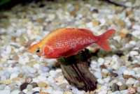 Разпространени са във водоемите в района на езерото Сентани (Папуа-Нова Гвинея). Дължина до 15 см, в аквариум малко по-малко. D1 4-6, D2 1/9-11, А 1/19-23, ll 50-60. Тялото е удължено, относително високо, с елипсовидна форма, силно сплескано отстрани. Устните са дебели. Младите риби, примерно до 6 см дължина, са сребристо-сиви. В тази възраст различаването на пола става по следния начин: рибите се държат дълго време в тъмнина, след това се вклюва светлината -- самците са черни, самките са сиво-жълти. При възрастните самци цялото тяло и плавниците са с червен цвят, отстрани минават дребни, с неправилна форма, тъмно-червени напречни ивици, отделните люспи имат сребърен блясък. Дъговата обвивка на очите е с наситено червен цвят. С възрастта, при доминиращия в групата самец окраската потъмнява. При възрастните самки гърба е маслен, страните са жълто-маслени с множество къси, тесни, златисто-жълти напречни ивици. Дъговата обвивка на очите е златисто-жълто. Плавниците са прозиращи, жълтеникави. Рибите са мирни, стадни, подвижни, страхливи. Може да се отглеждат в общ, закрит отгоре (при уплаха изкачат) аквариум, засаден с растения. Вода: 22-25°С, dH 10-25°, рН 7-8, чиста, богата на кислород. Храна: жива, заместители. Преди слагането на рибите за размножаване самците и самките 1-2 седмици се държат отделно. Развъден аквариум с дребнолистни растения, температура на водата с 2-3°С по-висока от при отглеждането. За размножаване се слага неголяма група риби, преобладаващи самци. Хвърлянето продължава няколко дни. Самката хвърля върху растенията до 700 зърна. Субстрата с хайвера всеки ден се пренася в инкубатор със свежа вода със същите параметри. Инкубационен период 7-8 денонощия, излюпените личинки веднага плуват по повърхността и се хранят: яйчен жълтък. Полова зрялост след 12-16 месеца.